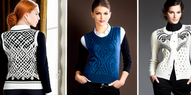 | Жилеты | Безрукавные модели, которые часто служат акцентом в образе | Жилеты с барочными мотивами, выполненными жаккардовой вязкой | Легкость в сочетании с другой одеждой, создание классического или кэжуал образа |