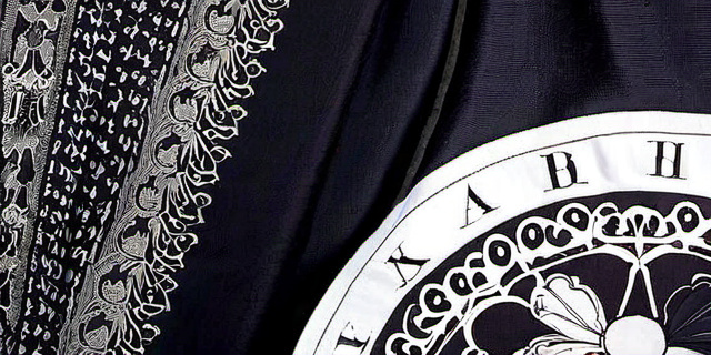 - Трёхмерность узоров: игра света на шелке подчёркивает сложность и детали готического орнамента.